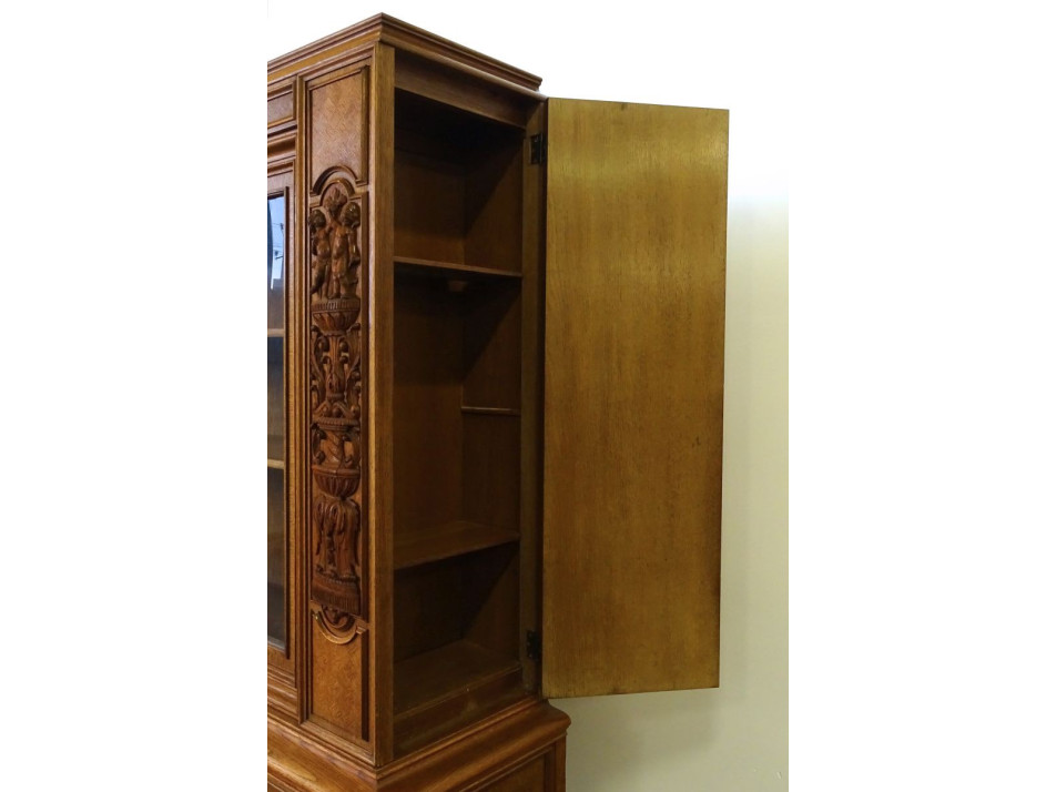 Antik angyalkás dúsan faragott nagyméretű könyvszekrény 201 x 233 cm