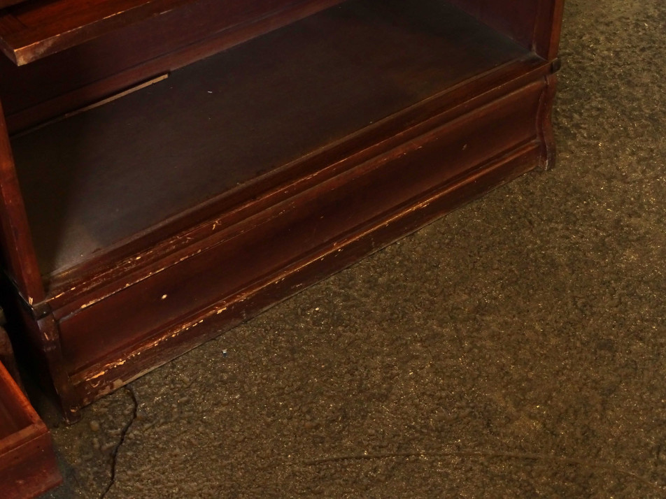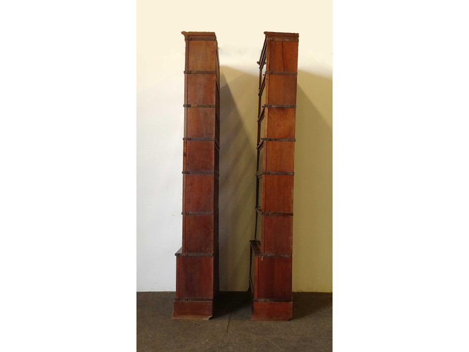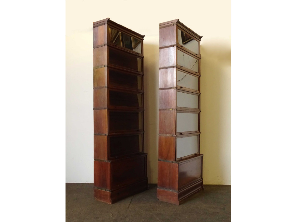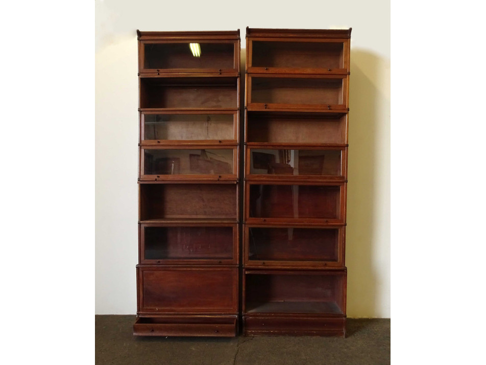Két darab, antik, szép állapotú, hét felfelé nyitható ajtóval rendelkező elemből álló, üveges bútor, alul egy-egy fatáblával burkolt ajtajú elemmel és fiókkal. Elemekre szedhető, fémpántos Lingel szekrény, könyvtároló polc. Cirka 6-700 darab könyv fér el benne. Az egyik elem üveglapja törött, az alsó elemek fogantyúi hiányoznak.