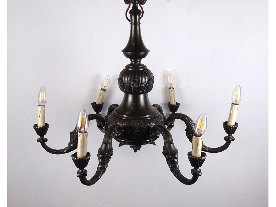 Antik 6 karú, bronz csillár 78 x 75 cm