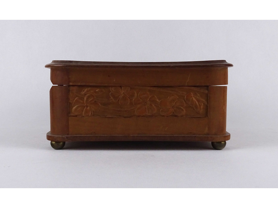 Antik faragott virágmintás szecessziós fadoboz 22.5 x 19 x 8.7 cm
