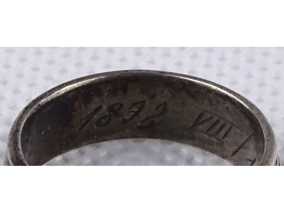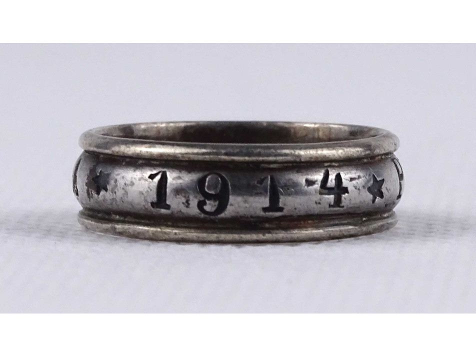 Antik, vésett feliratos acél gyűrű, világháborús emléktárgy, mely az első világháború kezdetén, 1914-ben indult "Aranyat vasért" mozgalomhoz kapcsolódik.