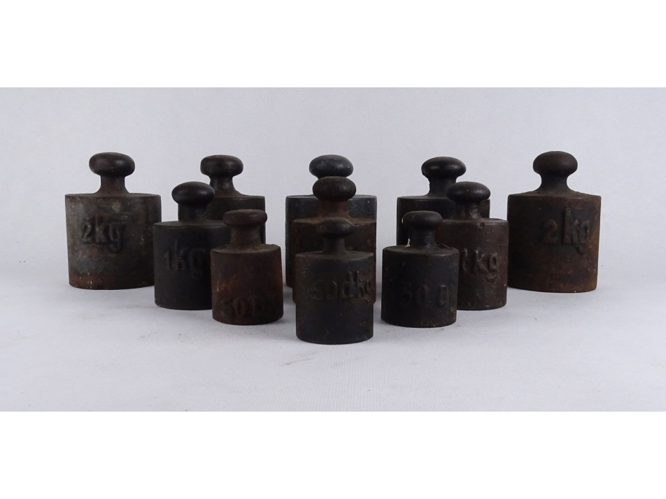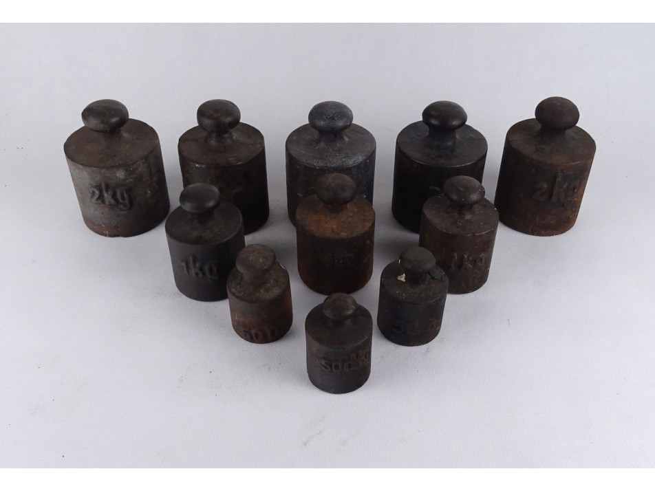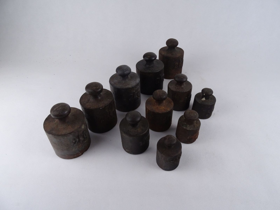 Régi piaci mérlegek öntöttvas súlyai összesen11 darab és 14.5 kg.