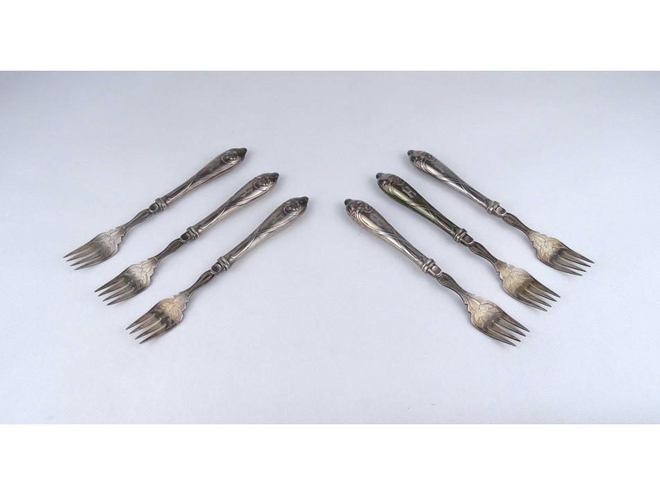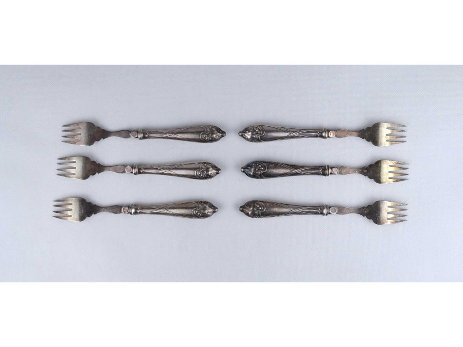 Antik ezüstözött szecessziós WMF evőeszköz készlet halas villa 6 darab