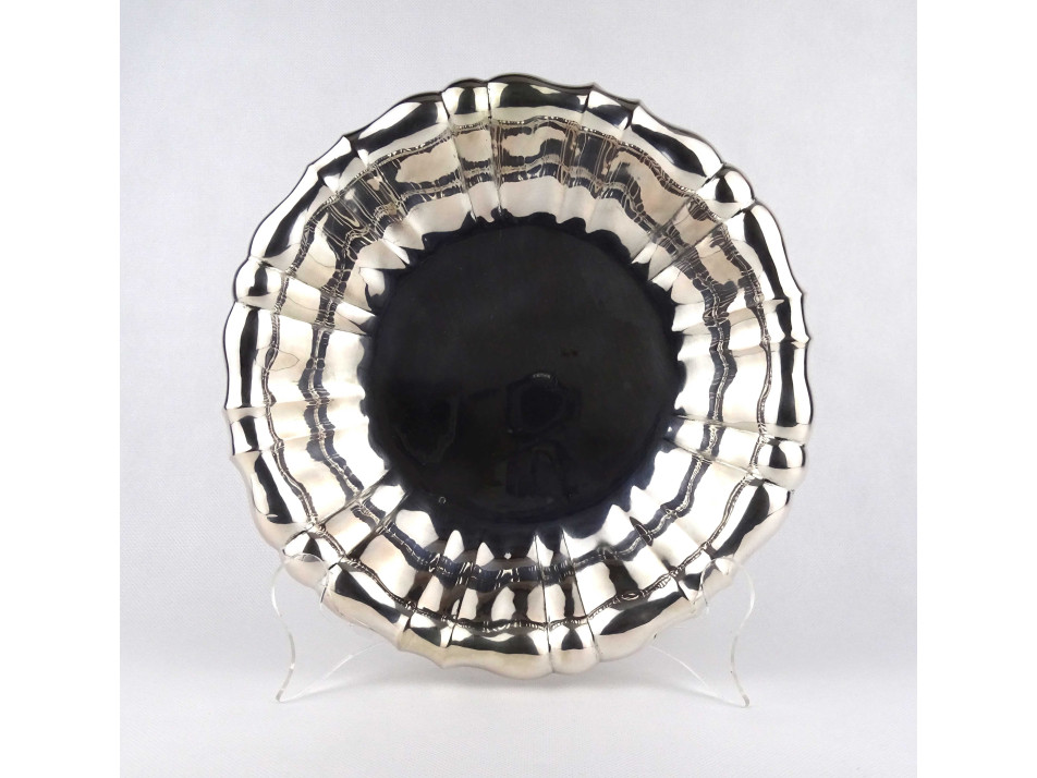 Antik 800-as ezüst, kör alakú bordázott tál, asztalközép 478 g