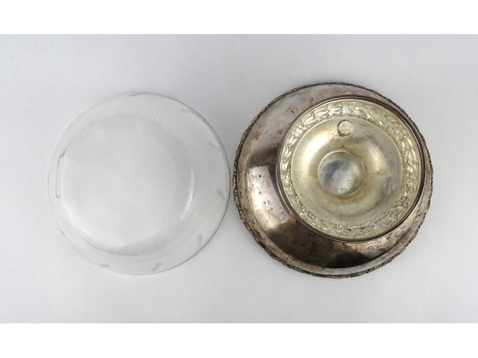 Antik üvegbetétes ezüstözött fém asztalközép gyümölcskínáló tál