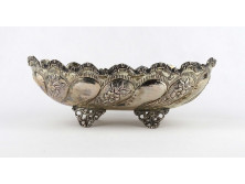 Antik sárgaréz talpas üvegbetétes asztalközép gyümölcs kínáló 24 cm