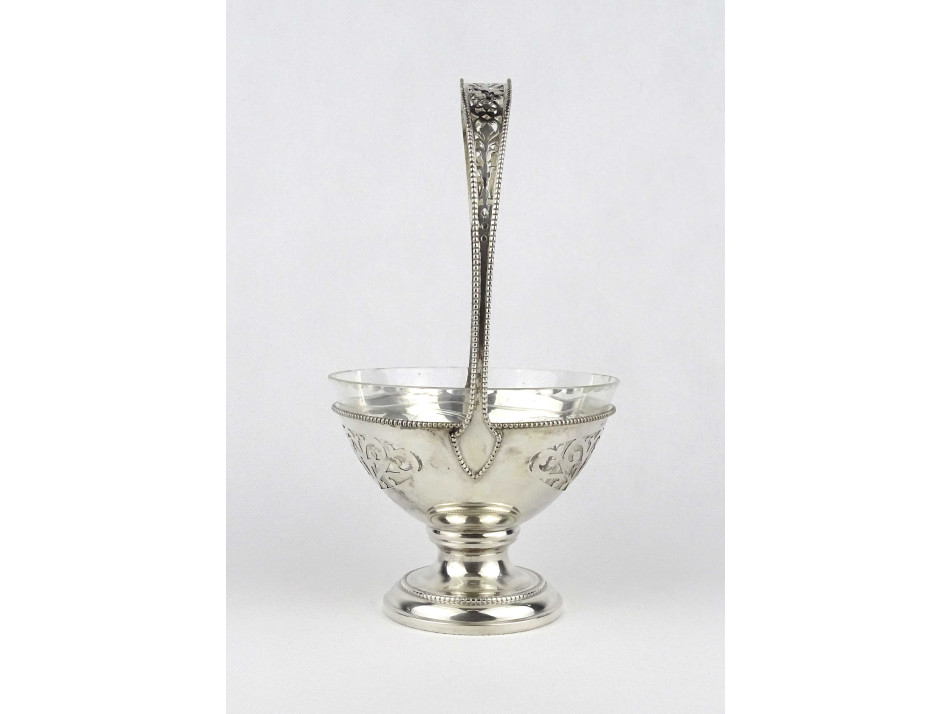 Antik csiszolt üvegbetétes 800-as ezüst kosár asztalközép 219 g