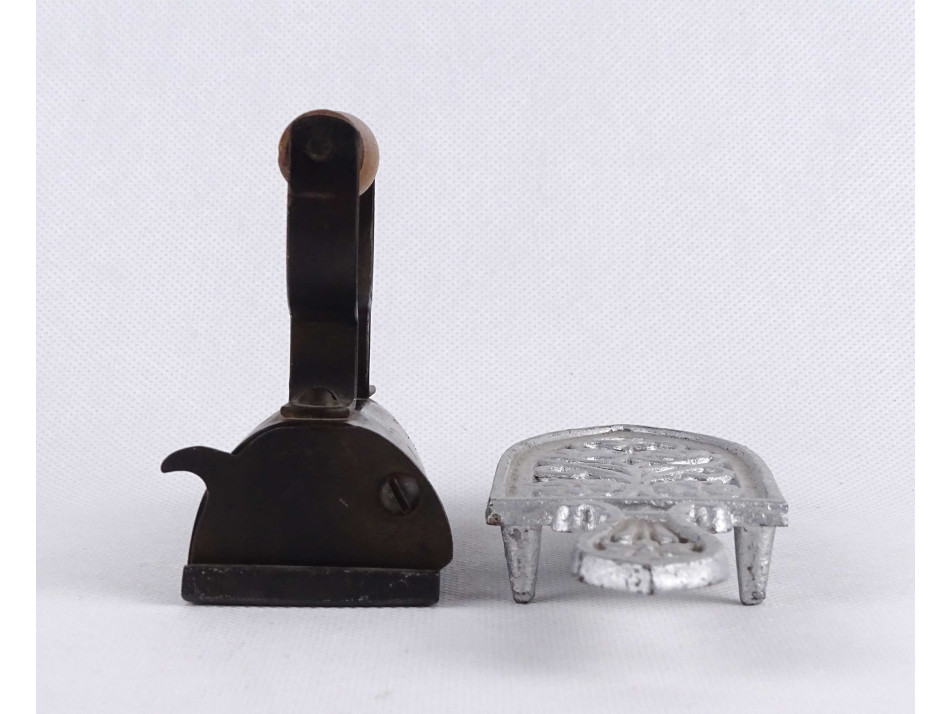 Antik kisméretű vasmagos vasaló öntöttvas állvánnyal
