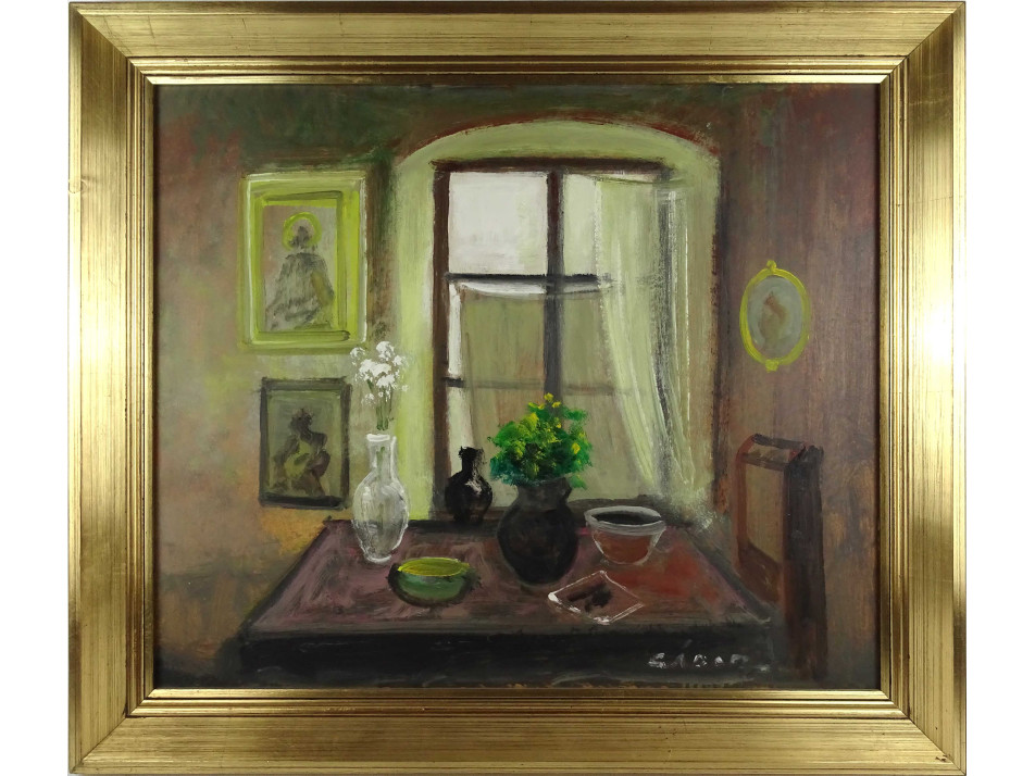 Olaj farost festmény, asztali csendélet hibátlan aranyozott keretben. Azonnal falra akasztható, ajándékozható állapotban.