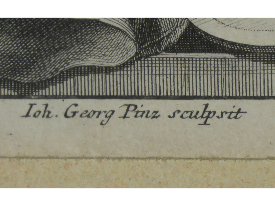 A jelzés (jelzés pontosan): Ioh. Georg Pinz Sculpsit (a lemezen)