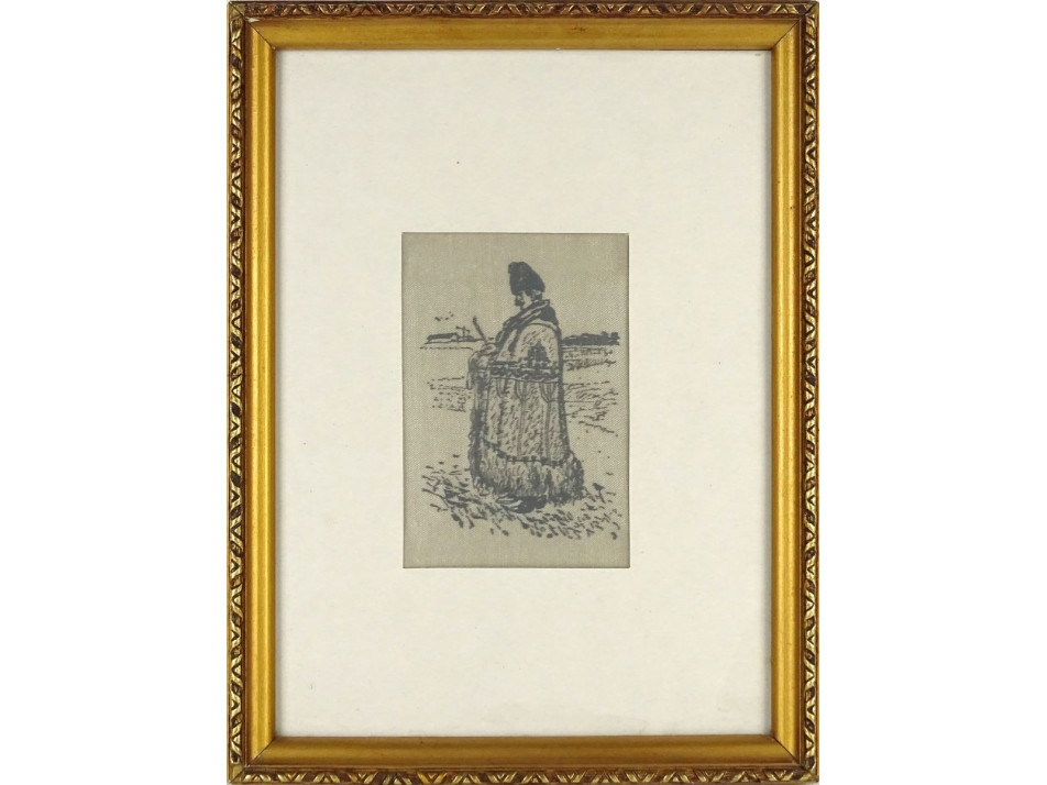 Régi aranyozott keretben, üveglap mögött található, kézzel festett, selyemkép. Hortobágyi juhász. Akasztási lehetőséggel rendelkezik.