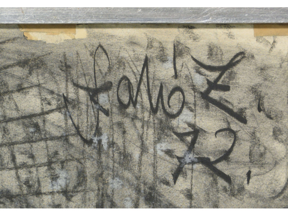 A festmény hátoldalán kiállítási címke: Műcsarnoki törzslap 1973. X.