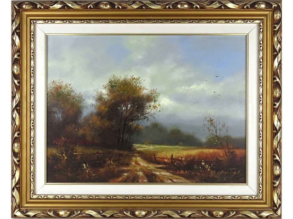 Olaj karton festmény , hibátlan állapotú, újszerűi arany keretben.