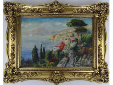 Olaj vászon festmény, nagy méretű aranyozott keretben. Akasztási lehetőséggel rendelkezik. Azonnal falra akasztható, ajándékozható állapotban.