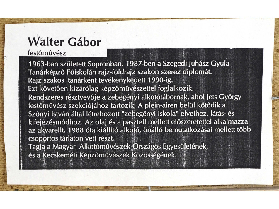 Melette a festő életrajzát tartalmazó címke, lásd fotó.