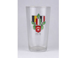 Antik festett üveg, I. világháborús emlékpohár a Központi hatalmak lobógóival 12 cm