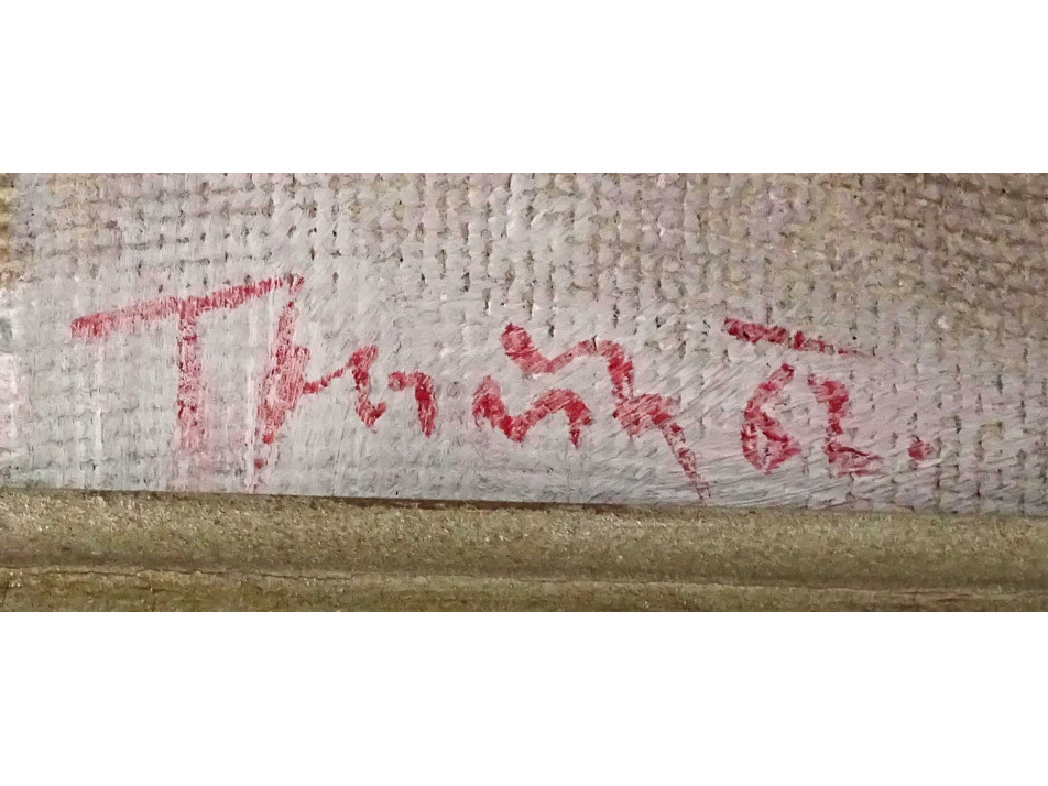 Olaj farost festmény, üveglap mögött, szép állapotú ezüst színű fa keretben.