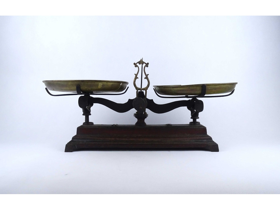 Antik kéttálcás öntöttvas háztartási mérleg