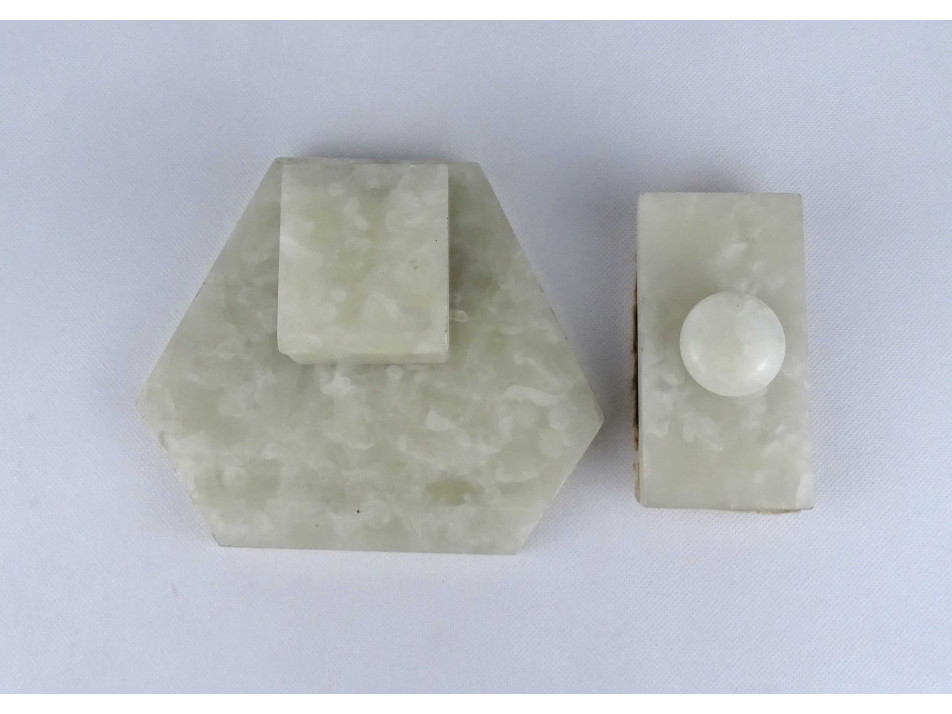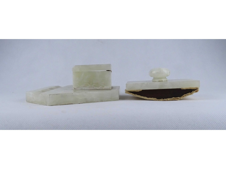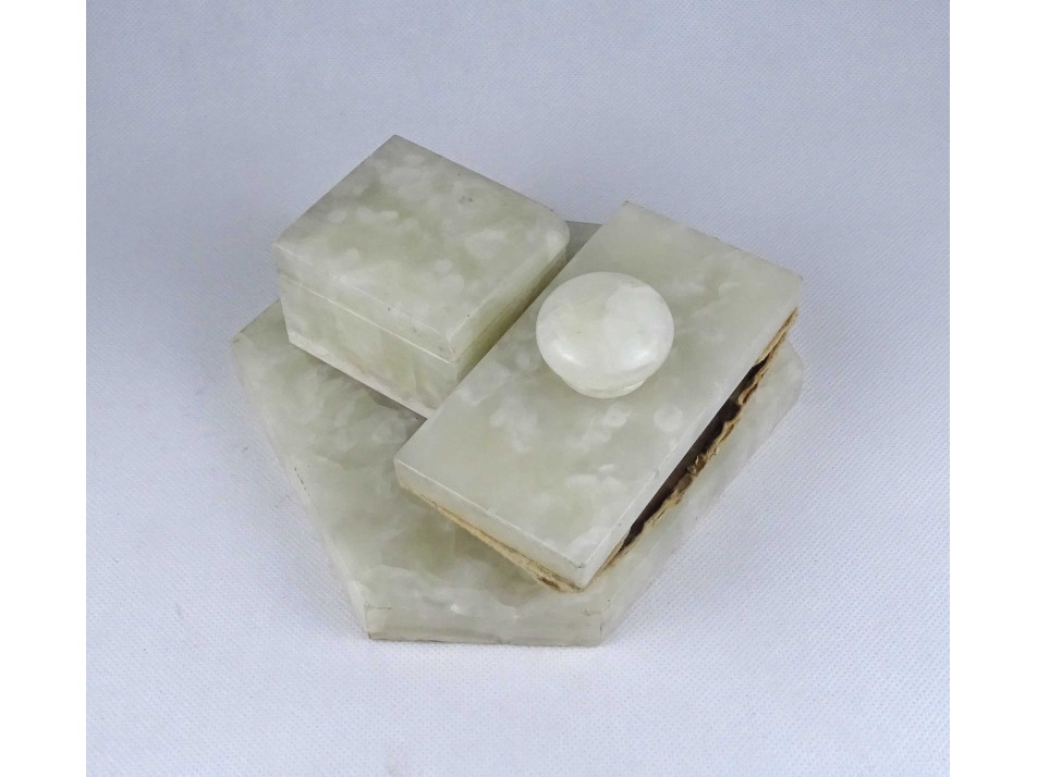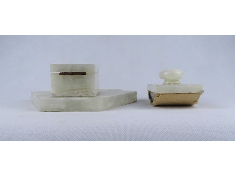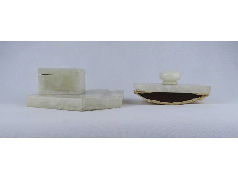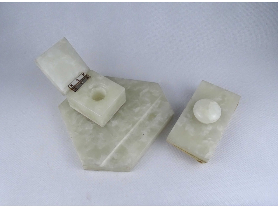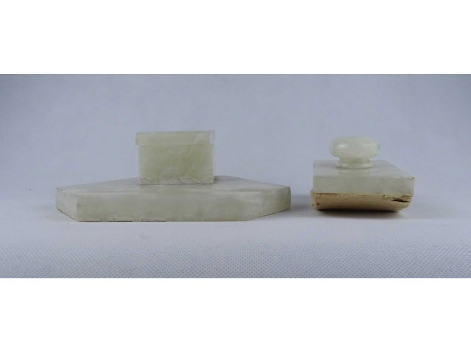 Régi, szép állapotú, fehér márvány kalamáris és tapper, íróasztali kellék készlet.