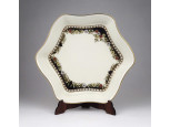 Vajszínű, hatszög alakú, Sissy mintás Zsolnay porcelán kínáló tál, asztalközép 21 cm