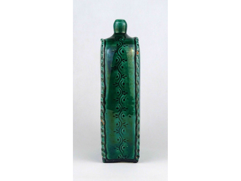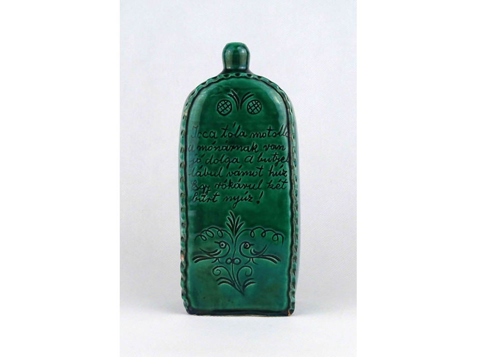 Gyönyörű zöld mázas feliratos vásárhelyi VÉKONY pálinkás butella