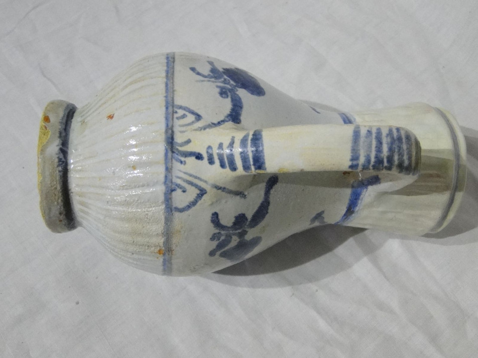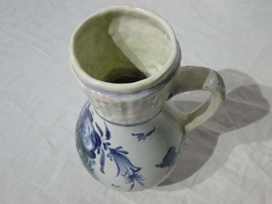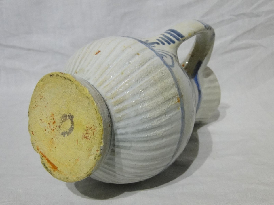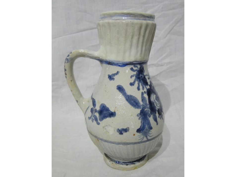 Virágmintás ónmázas bordázott bokály Ausztria, 1850 körüli.