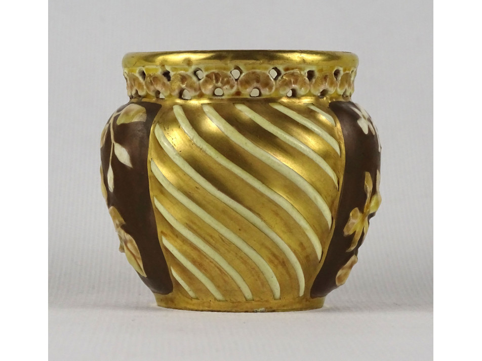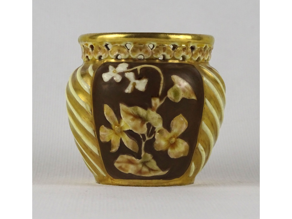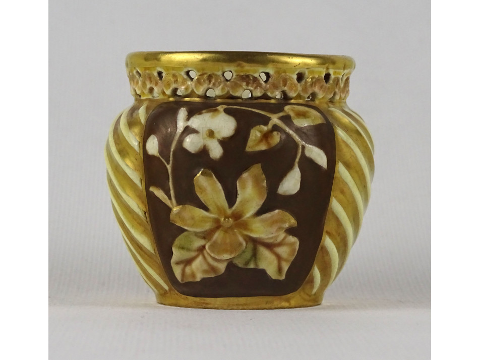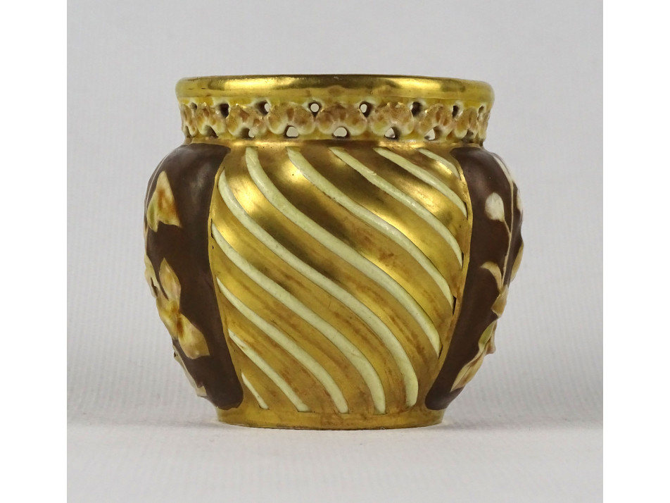 Antik aranyozott virágmintás áttört Zsolnay majolika kaspó