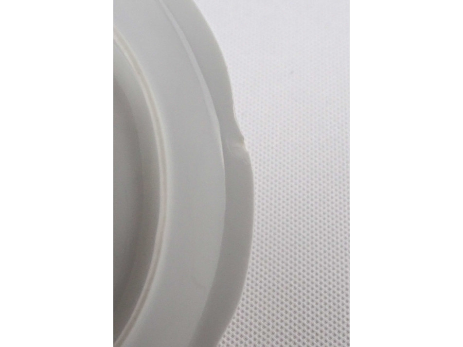 Antik, szép állapotú, jelzett, osztrák porcelán csontos tányér készlet, 5 darab. A tányérok peremén található aranyozás kopottas. Néhány apró lepattanás is fellelhető rajtuk.