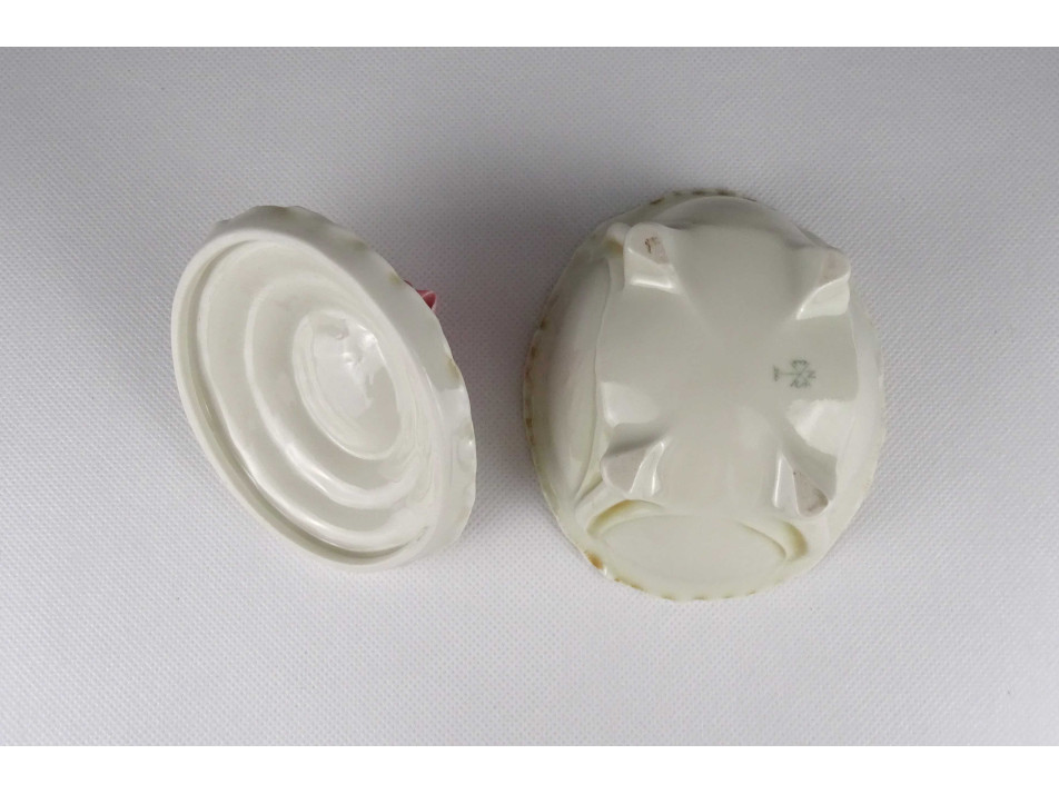 Régi, hibátlan állapotú, dupla rózsás, jelzett német porcelán bonbonier.
