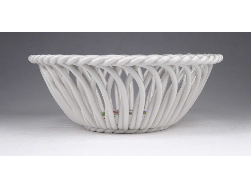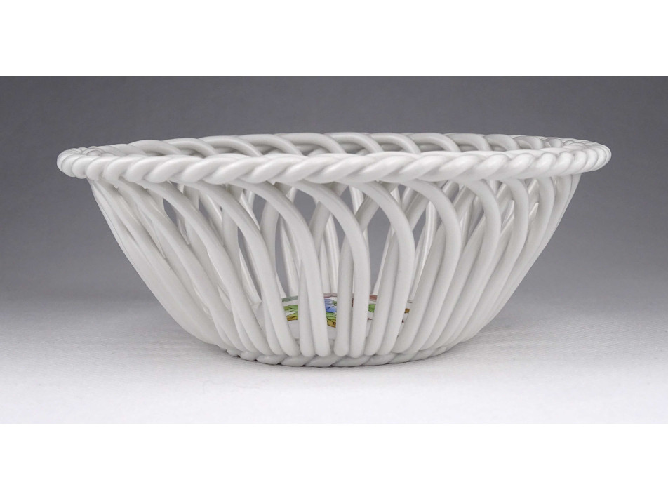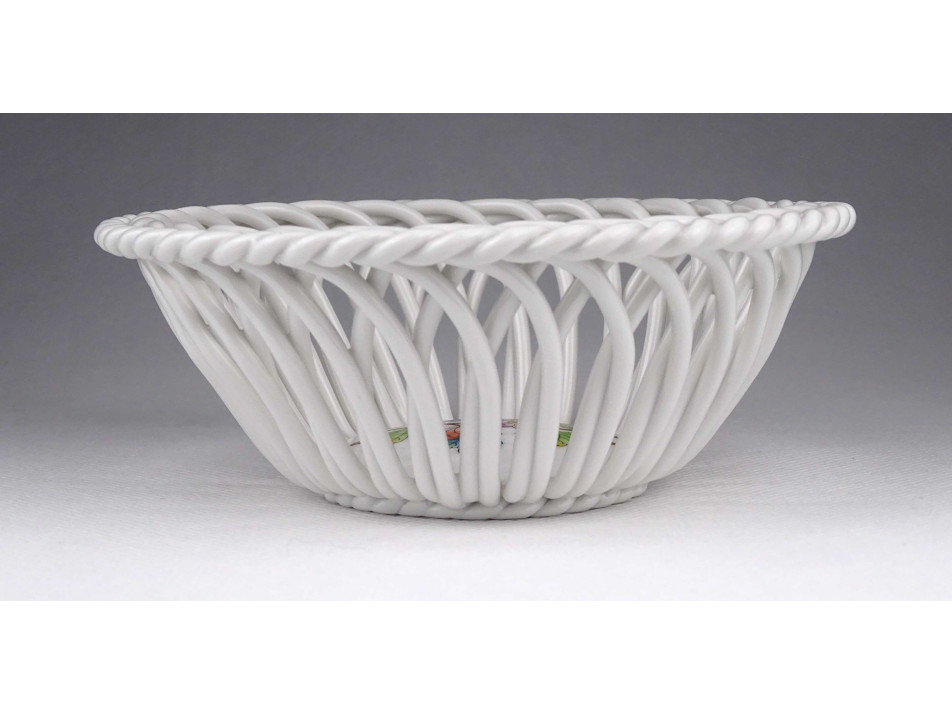 Hibátlan állapotú, gyönyörű fonatos, áttört díszes, I. osztályú Herendi porcelán kosárka.