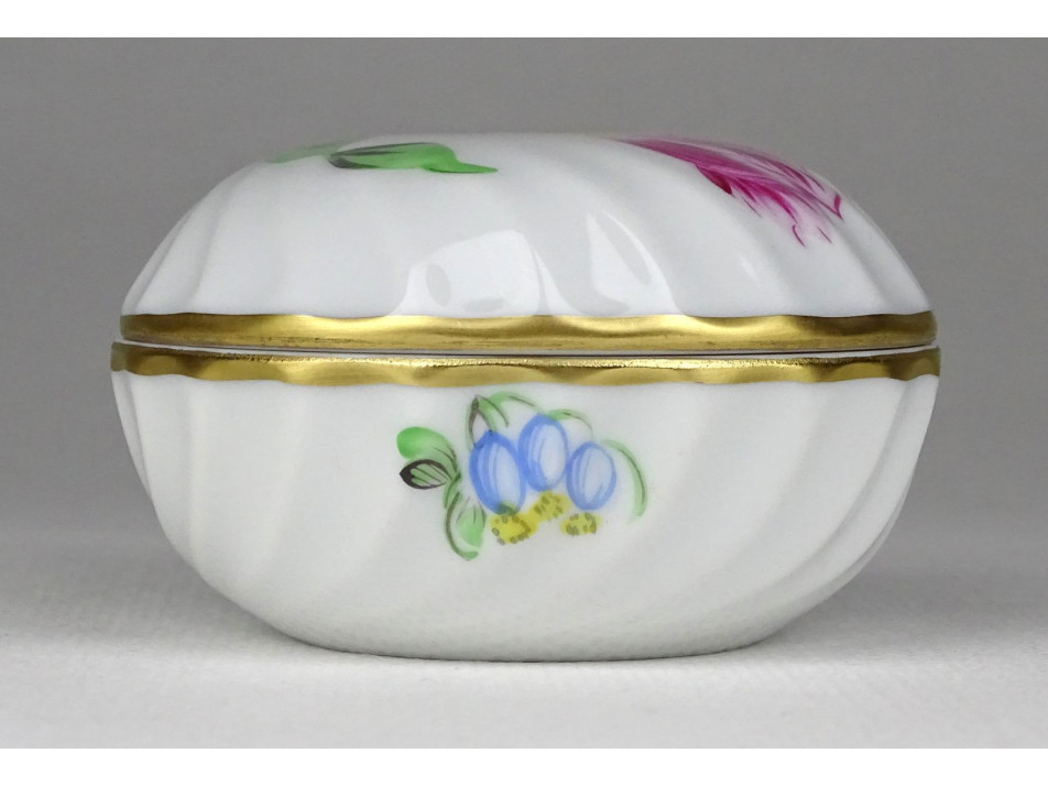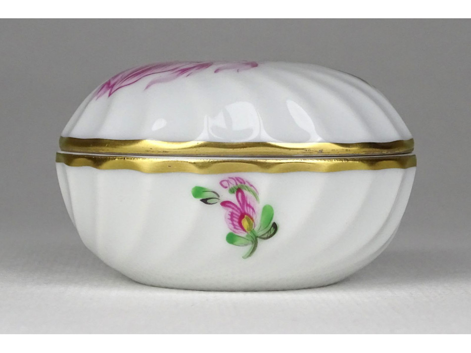 Hibátlan állapotú, gazdagon aranyozott tulipán mintás Herendi porcelán bonbonier.