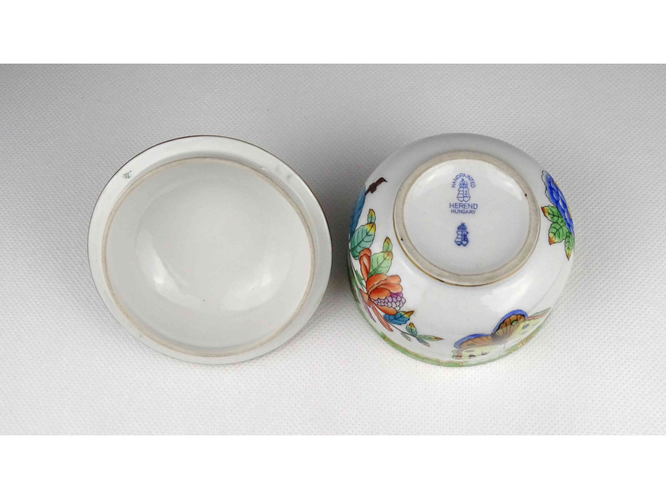 Antik Viktória mintás Herendi porcelán bonbonier 9.2 cm