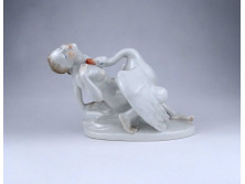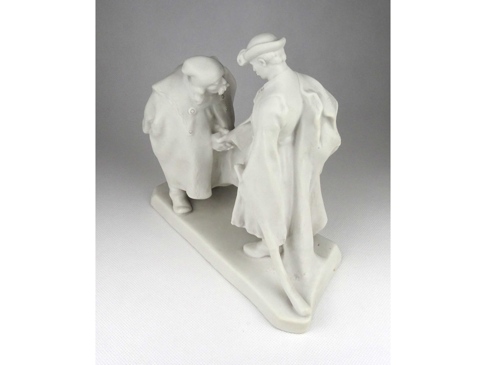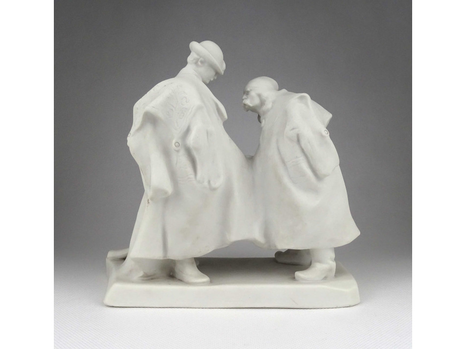 Régi Herendi porcelán biszkvit szobor - Pásztor J: búcsúzkodó juhászok
