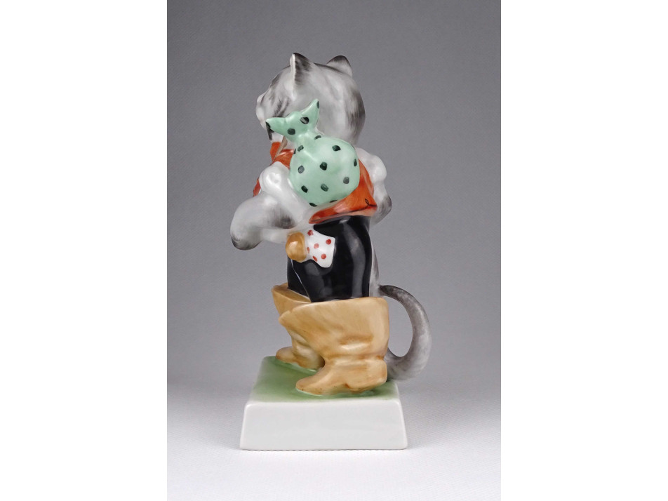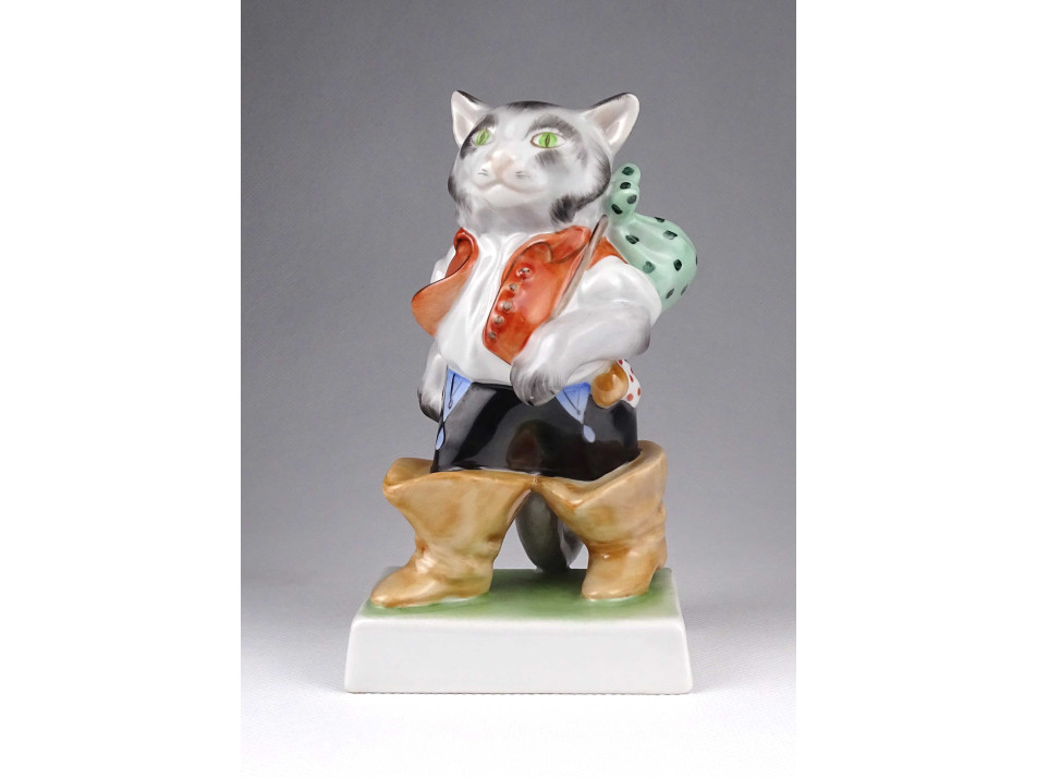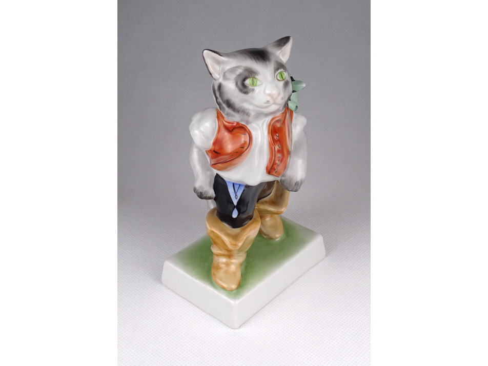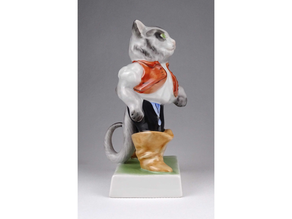 Csizmás Kandúr Herendi porcelán figura 15.5 cm