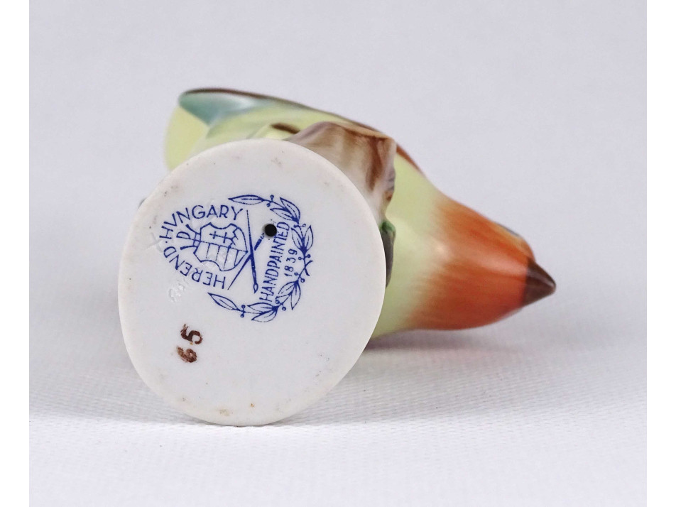 Hibátlan állapotú, kis méretű Herendi porcelán madár figura talapzaton.