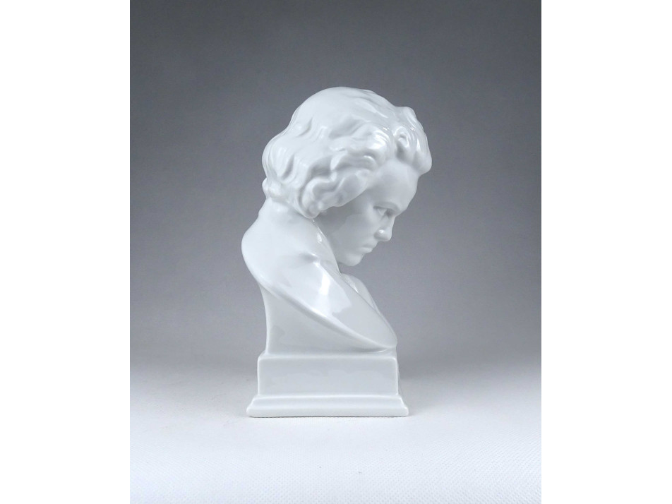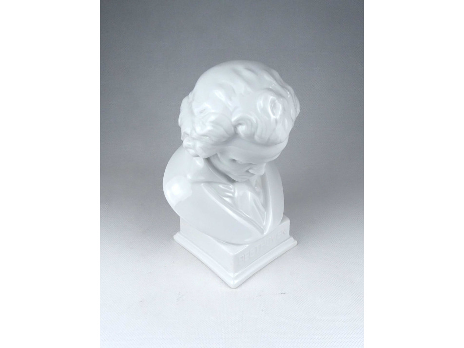 Régi, hibátlan állapotú, jelzett, fehér színű, festetlen Herendi porcelán Beethoven büszt, mellszobor.