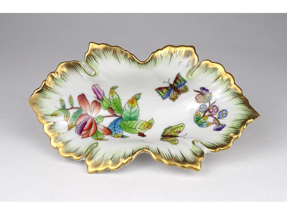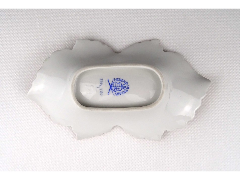 Hibátlan állapotú, Viktória mintás, levél alakú Herendi porcelán hamutál, tálka.