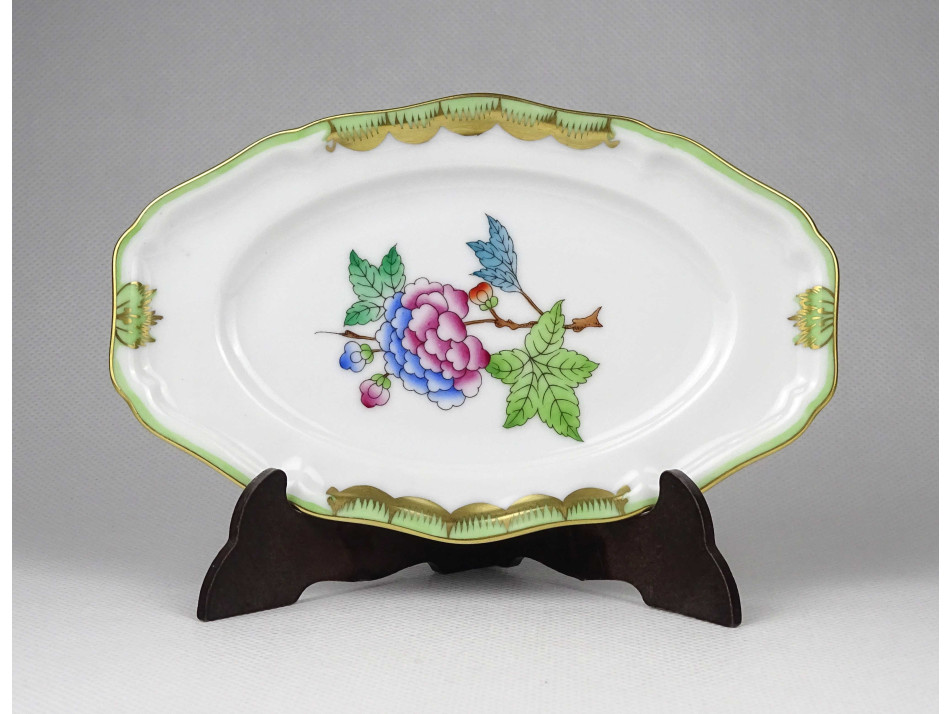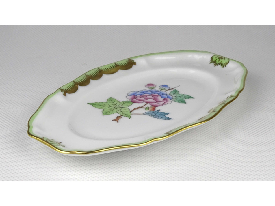 Régi, ovális alakú, Viktória mintás Herendi porcelán tál, tálka, hamutál.