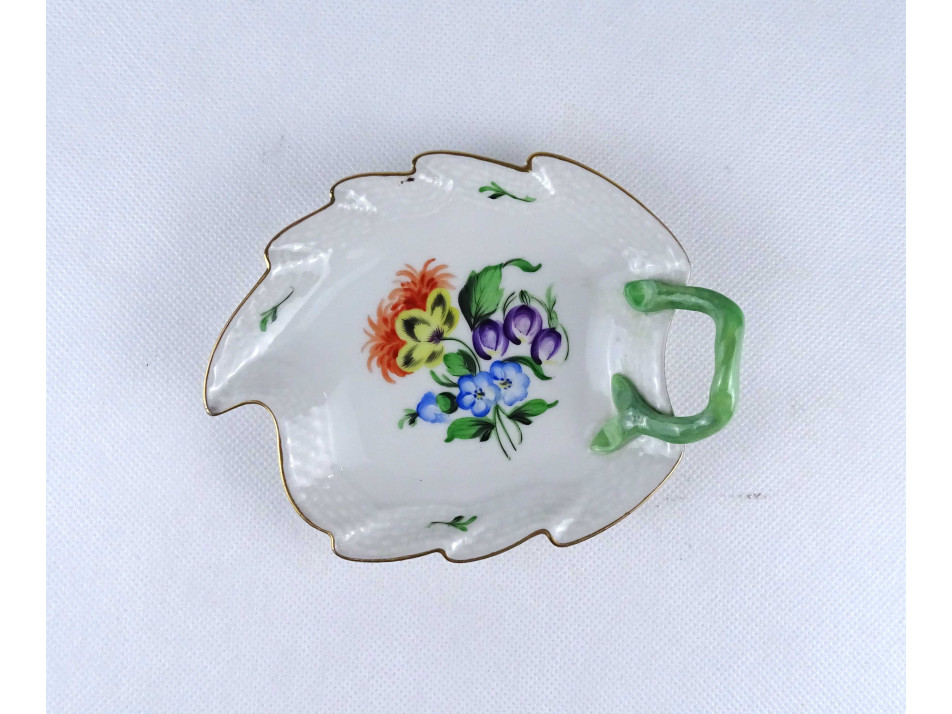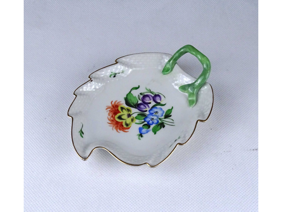 Virágmintás levél alakú Herendi porcelán tálka hamutál 14.2 cm