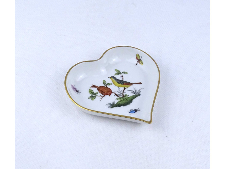 Régi, hibátlan állapotú, szív alakú rothschild mintás Herendi porcelán tál, hamutál.