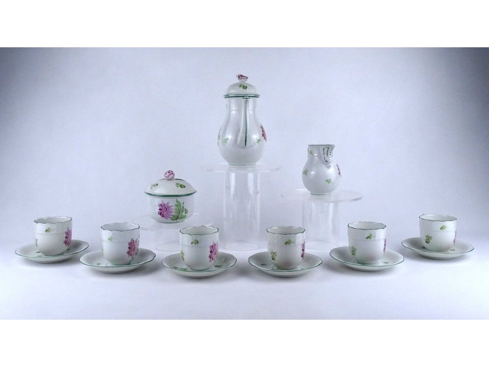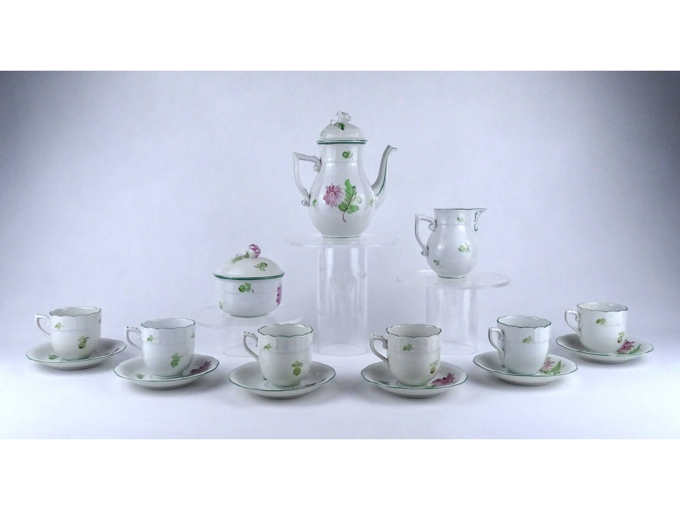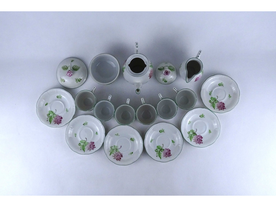 Régi, hat személyes, hibátlan állapotú, virágmintás, Herendi porcelán kávés készlet. 15 darab.