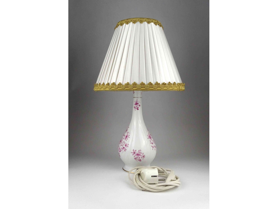 Rózsaszín virág mintás Hollóházi porcelán asztali lámpa 41 cm