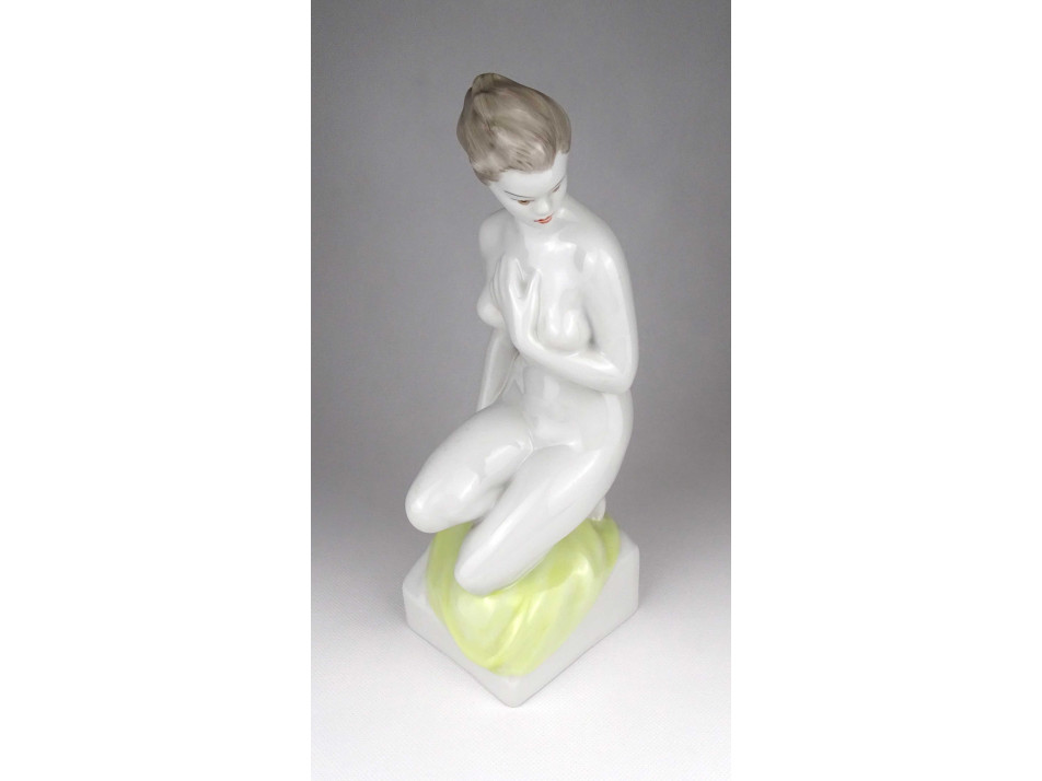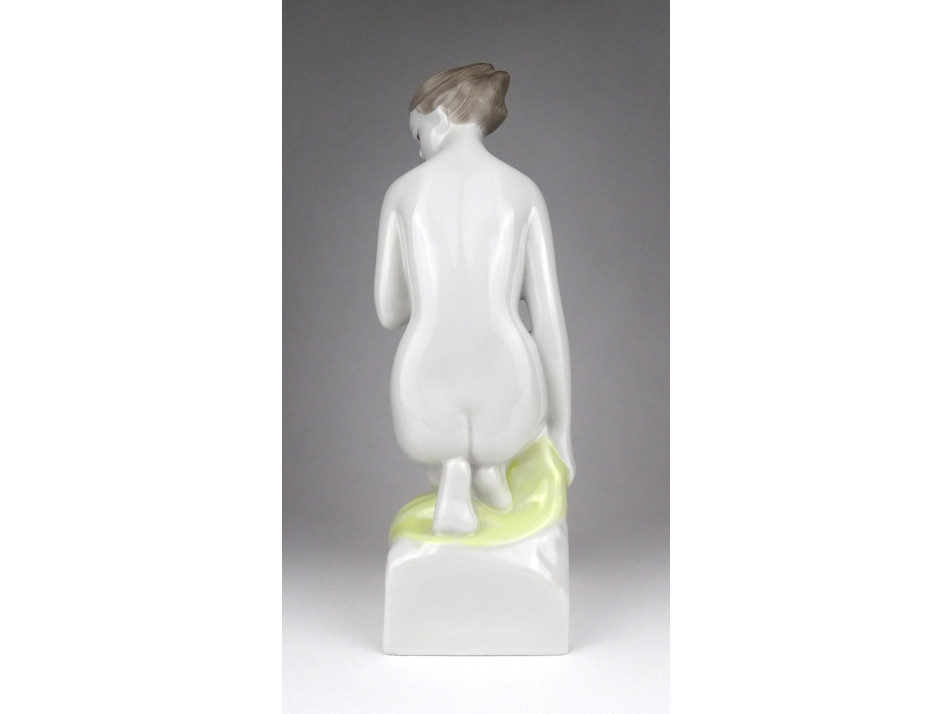 Hibátlan állapotú Hollóházi térdelő porcelán női akt szobor.