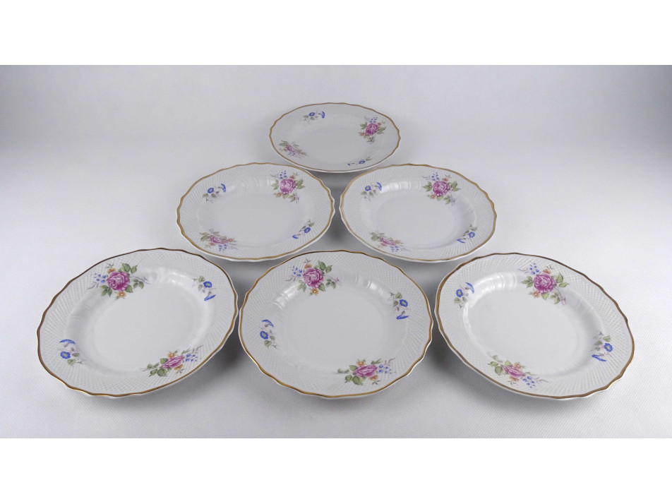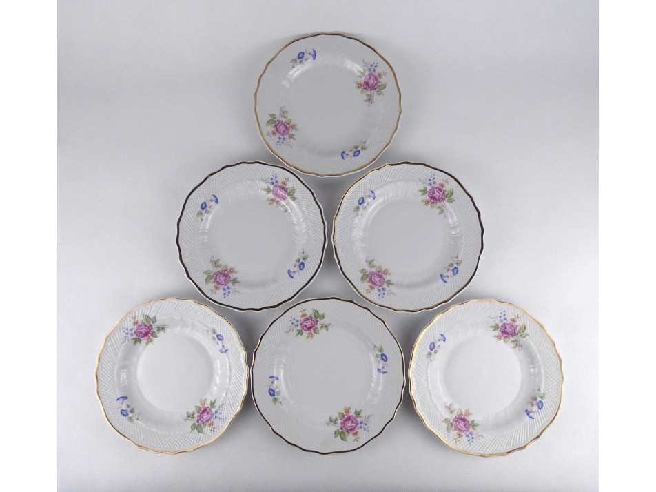 Hajnalka mintás aranyozott Hollóházi porcelán süteményes tányér készlet 6 darab
