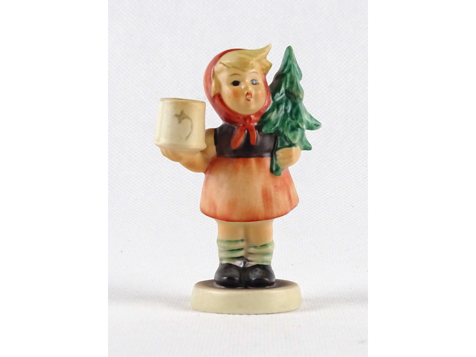 Régi gyertyatartós Hummel figura kislány fenyőfával 8.6 cm