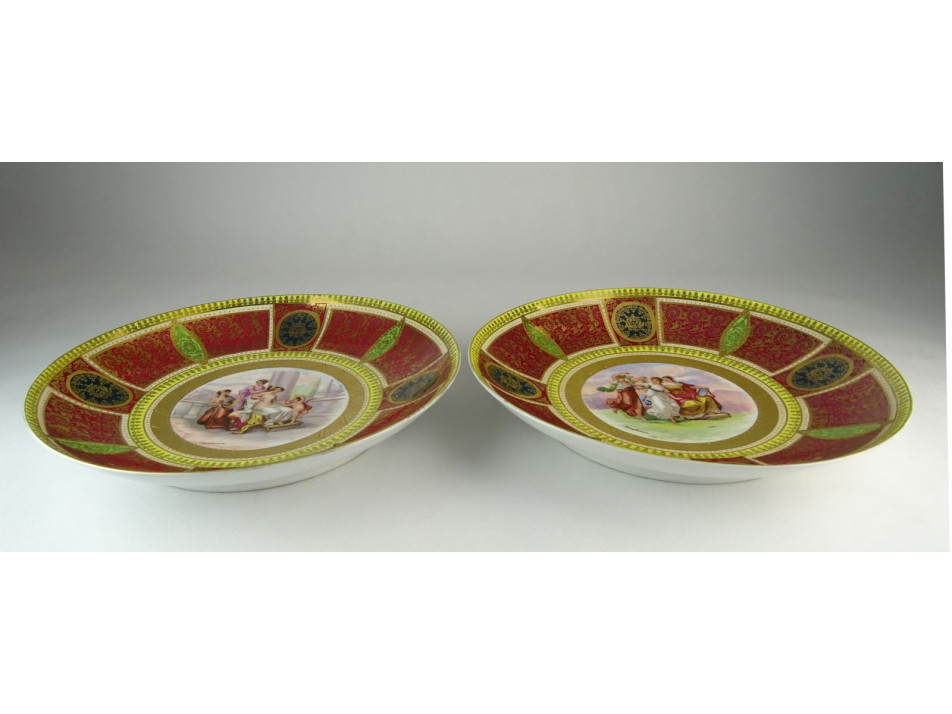 Antik nagy méretű Altwien dísztál pár 34 cm