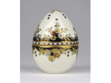 Különleges, hibátlan állapotú, vajszínű, aranyozással gazdagon díszített, lepkés, pillangós virágmintás porcelán gyűrűtartó, ékszertartó bonbonier.