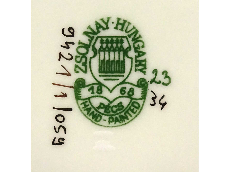 Alján zöld színű Zsolnay öttornyú márkajelzés: