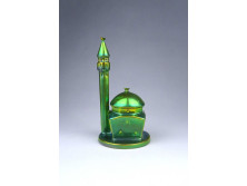 Hibátlan állapotú, jelzett zöld eozin mázas Zsolnay porcelán dzsámi minarettel.