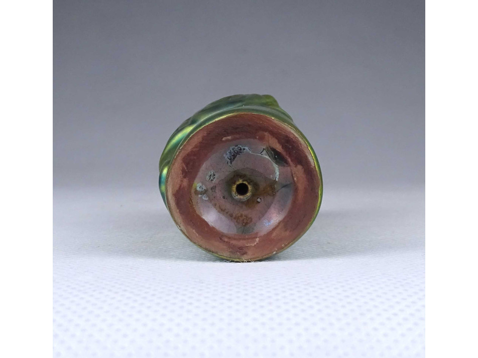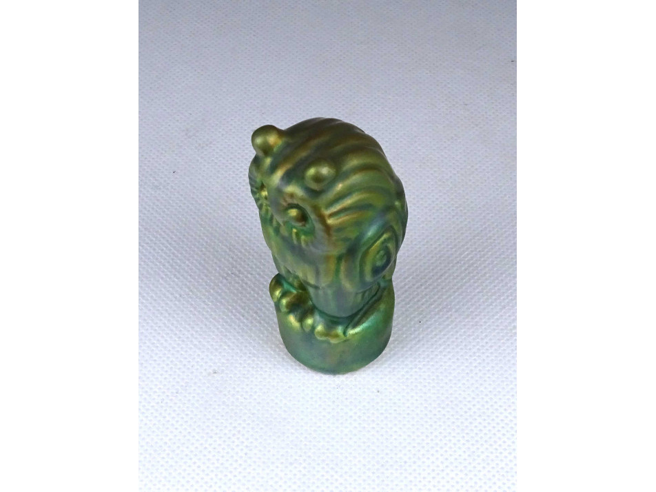 Régi, zöld eozin mázas Zsolnay porcelán bagoly figura.